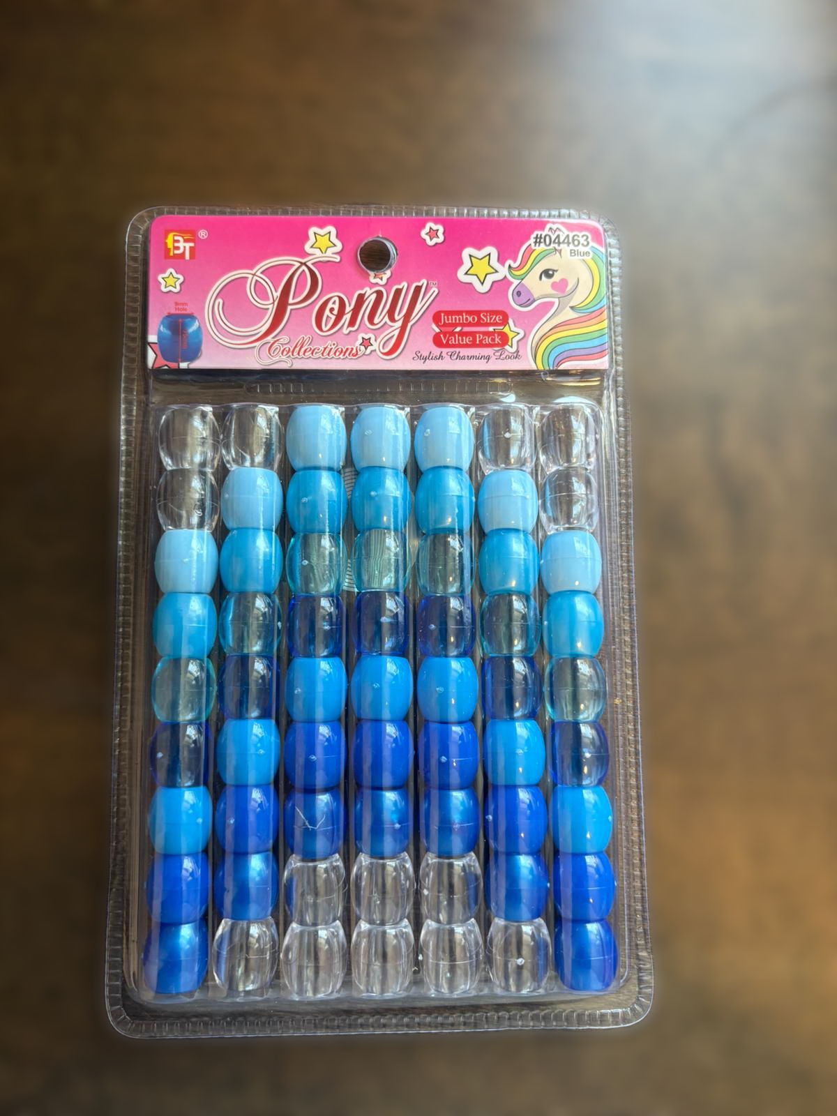 This Pony Collections jumbo-size bead pack includes a mix of blue and clear tones. Ideal for braids and ponytails – safe, durable, and easy to apply for children.